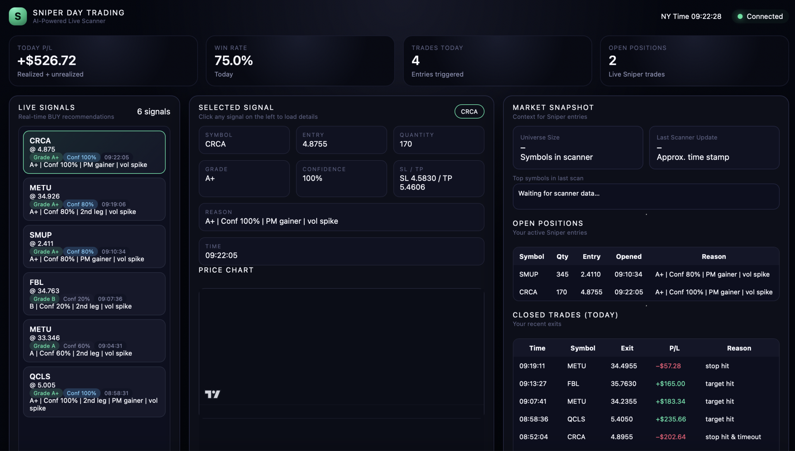 Our platform combines cutting-edge artificial intelligence with institutional-grade market data to deliver real-time buy and sell alerts. The proprietary Sniper entry logic analyzes price action, volume, and advanced indicators to identify high-probability setups—ensuring you enter trades at the optimal moment with minimal risk.